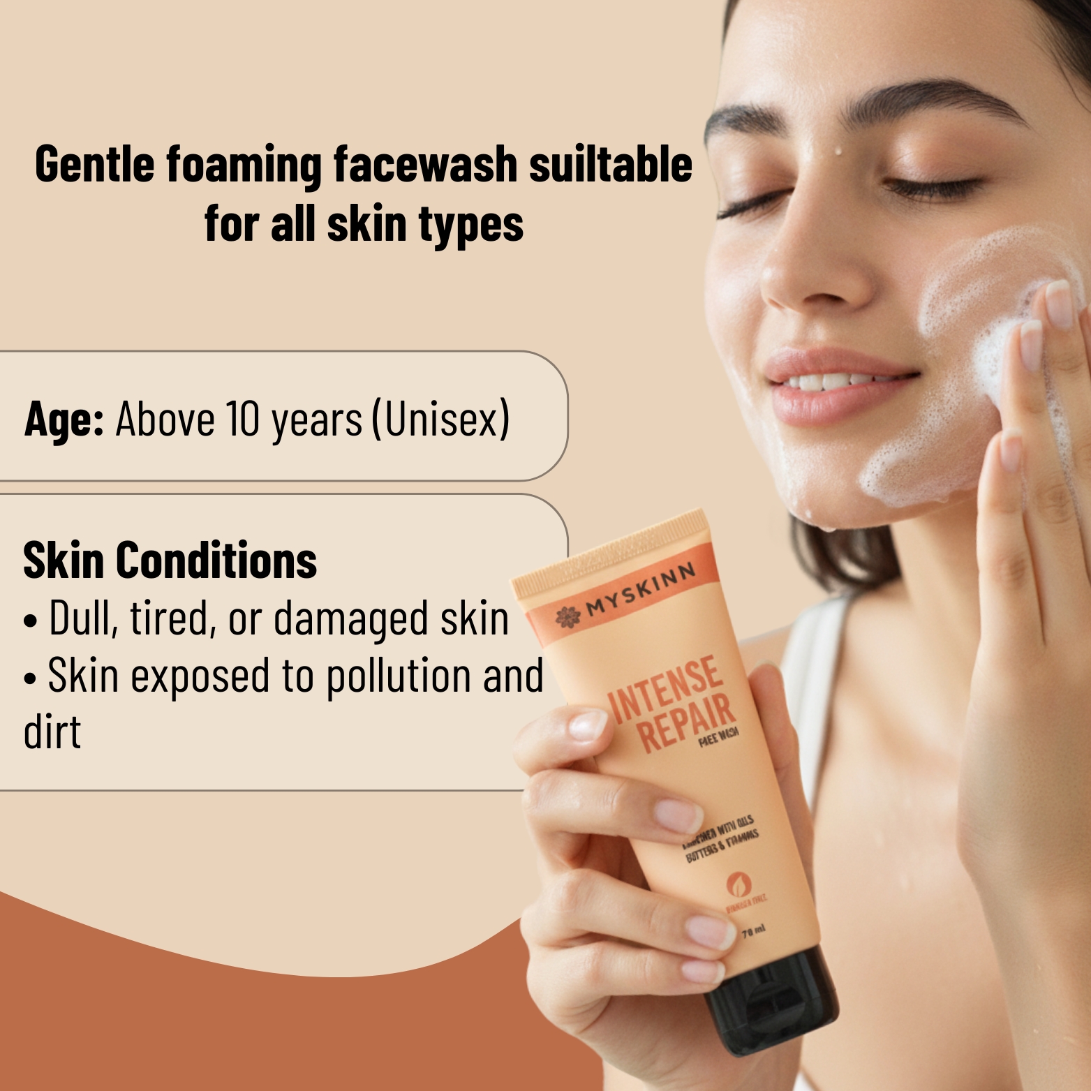 MySkinn Intense Repair Face Wash is the perfect product to help keep my skin clean and refreshed. After using it, I instantly noticed a smoother, softer texture that lasted throughout the day.
